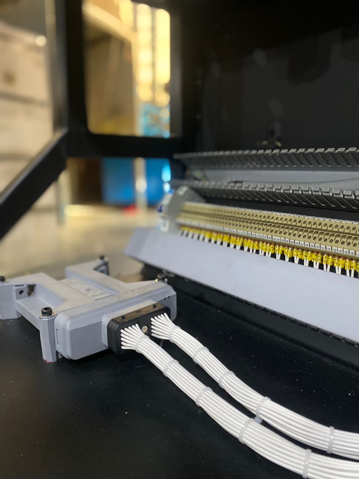 🔌 Cabeamento numerado com proteção em poliamida, conectores AMP e tomadas multipolares. Permitindo assim uma conexão robusta e ágil .